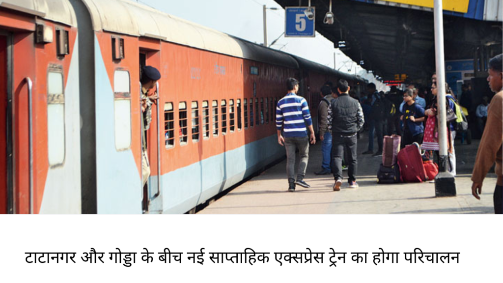 रेलवे झारखण्डवासियों को दिवाली की सौगात दे रहा है। रेलवे ,झारखण्ड के टाटानगर से गोड्डा के रास्तों में एक नई ट्रेन का परिचालन शुरू कर रहा है. ट्रेन संख्या 03410 गोड्डा – टाटानगर स्पेशल एक्सप्रेस का उद्घाटन 22 अक्टूबर को गोड्डा से किया जाएगा, इसके बाद ट्रेन 13.00 बजे स्टेशन से प्रस्थान करेगी। टाटानगर – गोड्डा- टाटानगर साप्ताहिक एक्सप्रेस ट्रेन का नियमित परिचालन टाटानगर से 24 अक्टूबर एवं गोड्डा से 25 अक्टूबर से होगा। ट्रेन 18185 टाटानगर – गोड्डा साप्ताहिक एक्सप्रेस ट्रेन 24 अक्टूबर से प्रत्येक सोमवार को टाटानगर से प्रस्थान करेगी।ट्रेन का हंसडीआ, भागलपुर, किउल, जसीडीह, धनबाद, बोकारो स्टील सिटी होते हुए मुरी आगमन 04.30 बजे प्रस्थान 04.35 बजे एवं टाटानगर आगमन 07.00 बजे होगा। इन ट्रेनों में एसएलआरडी के दो कोच, सामान्य श्रेणी के तीन कोच, द्वितीय श्रेणी स्लीपर क्लास के 12 कोच, वातानुकूलित 3-टियर के तीन कोच, वातानुकूलित 2-टियर के 02 कोच, कुल 22 कोच होंगे। गोड्डा – टाटानगर साप्ताहिक एक्सप्रेस ट्रेन 25 अक्टूबर से प्रत्येक मंगलवार को गोड्डा से प्रस्थान करेगी।