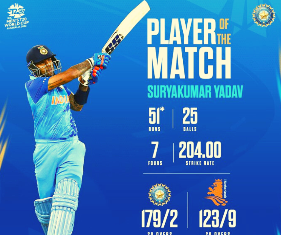 भारत ने T20 विश्व कप में नीदरलैंड्स पर 56 रन से जीत दर्ज की।