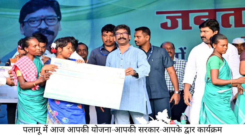 पलामू के मेदिनीनगर में आज आपकी योजना आपकी सरकार आपके द्वार कार्यक्रम का आयोजन किया गया है। इस कार्यक्रम में मुख्यमंत्री हेमंत सोरेन के साथ पलामू की प्रभारी मंत्री जोबा मांझी व पेयजल एवं स्वच्छता मंत्री मिथिलेश ठाकुर भी मौजूद रहेंगे। इस दौरान हेमंत सोरेन स्थानीय पुलिस स्टेडियम में आयोजित कार्यक्रम में दर्जनभर से अधिक योजनाओं का शिलान्यास के साथ उद्घाटन करेंगे। साथ ही जनकल्याण कारी योजनाओं के लाभुकों के बीच ऋण व परिसंपत्तियों का वितरण किया जाएगा। पंचायत स्तर पर पूरे कार्यक्रम की लाइव स्ट्रीमिंग भी कराई जाएगी।
