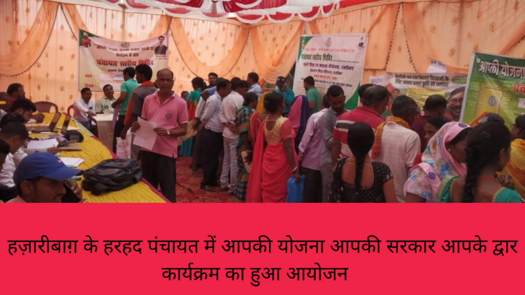 झारखण्ड के प्रत्येक जिले में हेमंत सरकार की योजना , आपकी योजना आपकी सरकार आपके द्वार कार्यक्रम चलाई जा रही है। हज़ारीबाग़ के सदर प्रखंड की हरहद पंचायत के हुपाद में कार्यक्रम का आयोजन किया गया. मौके पर बतौर मुख्य अतिथि के रूप मे केके सोन, सचिव राजस्व निबंधन एवं भू-सुधार विभाग, झारखंड सरकार, नैंसी सहाय उपायुक्त, प्रेरणा दीक्षित उप विकास आयुक्त, विद्या भूषण अनुमंडल पदाधिकारी सदर के द्वारा दीप प्रज्जवलित कर कार्यक्रम का शुभारंभ किया गया। राजीव कुमार मेहता ने ग्रामीणों को सरकार की ओर से चलाई जा रही जनकल्याणकारी योजनाओं के बारे में विस्तृत जानकारी दी गई। हरहद पंचायत शिविर में मनरेगा के तहत 15 योजनाओं की स्वीकृति प्रदान की गई। सावित्रीबाई फुले किशोरी समृद्धि योजना के तहत आठ किशोरियों को स्वीकृति पत्र प्रदान किया गया। फुलो झानो योजना के तहत दो दो लाभुकों को स्वीकृति पत्र दिया गया। कृषि विभाग की ओर से दो लाभुक को कुल एक लाख 36 हज़ार रूपये का केसीसी लोन की स्वीकृति प्रदान की गई। राजस्व विभाग की ओर से तीन लोगों को लगान रसीद एवं चार लोगों को जाति-आवासीय प्रमाण-पत्र प्रदान किया गया। आपूर्ति विभाग की ओर से चार लोगों को राशन कार्ड तथा 90 जरूरतमंदों को कंबल का वितरण किया गया। मौके पर तीन लाभुकों को स्वरोजगार से जोड़ने के लिए मुख्यमंत्री रोजगार सृजन योजना की स्वीकृति दी गई। इस तरह की अनेक योजनाओं का वितरण लाभुकों के बीच किया गया.